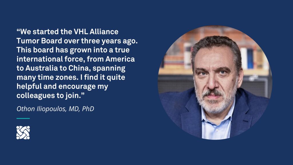 While the Tumor Board is open only to medical professionals, it directly benefits patients. If you believe that your case could benefit from a second opinion or additional expert input, you can ask your provider if they would consider presenting your case at the VHL Alliance Virtual Tumor Board.
