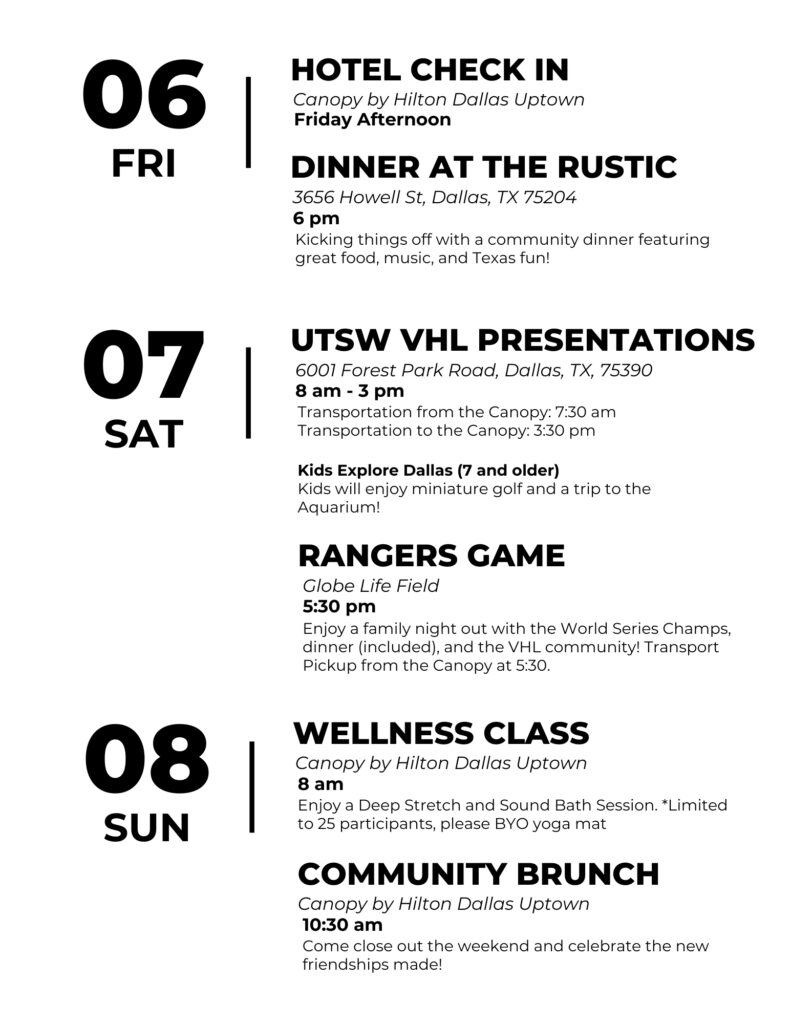 - Secure your spot today for the VHL Alliance Family Weekend at UT Southwestern for $50 today.