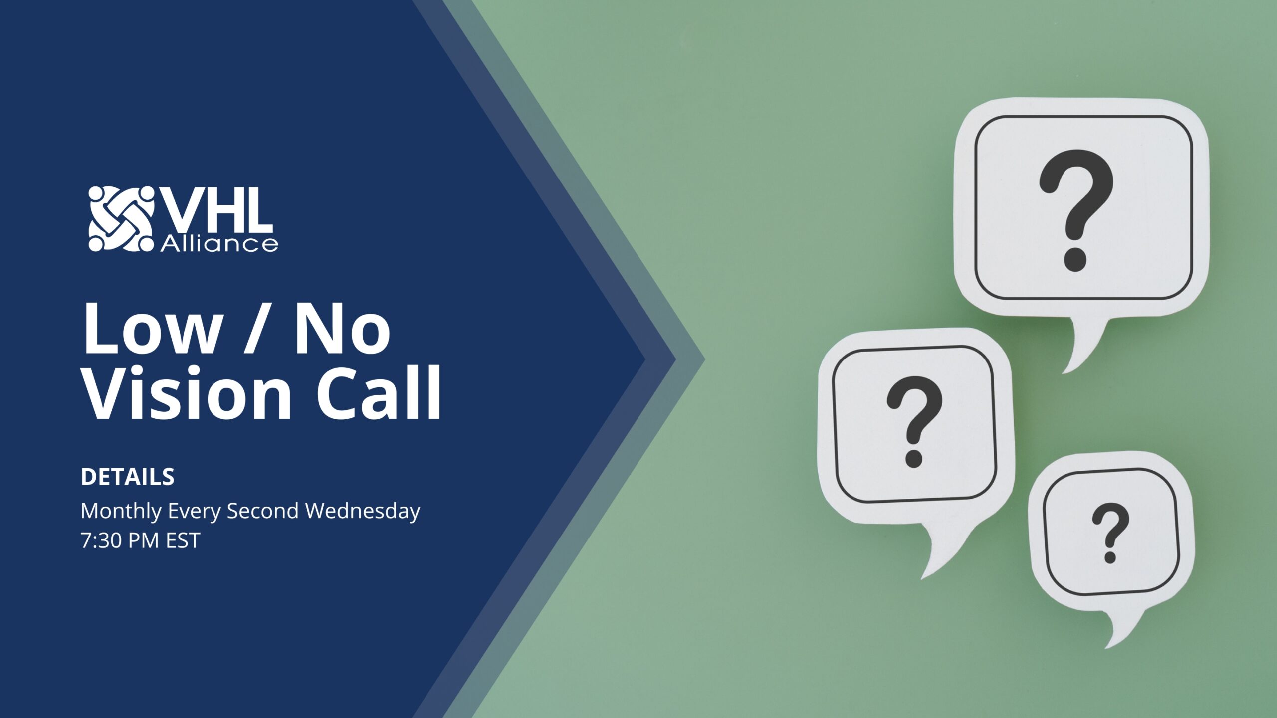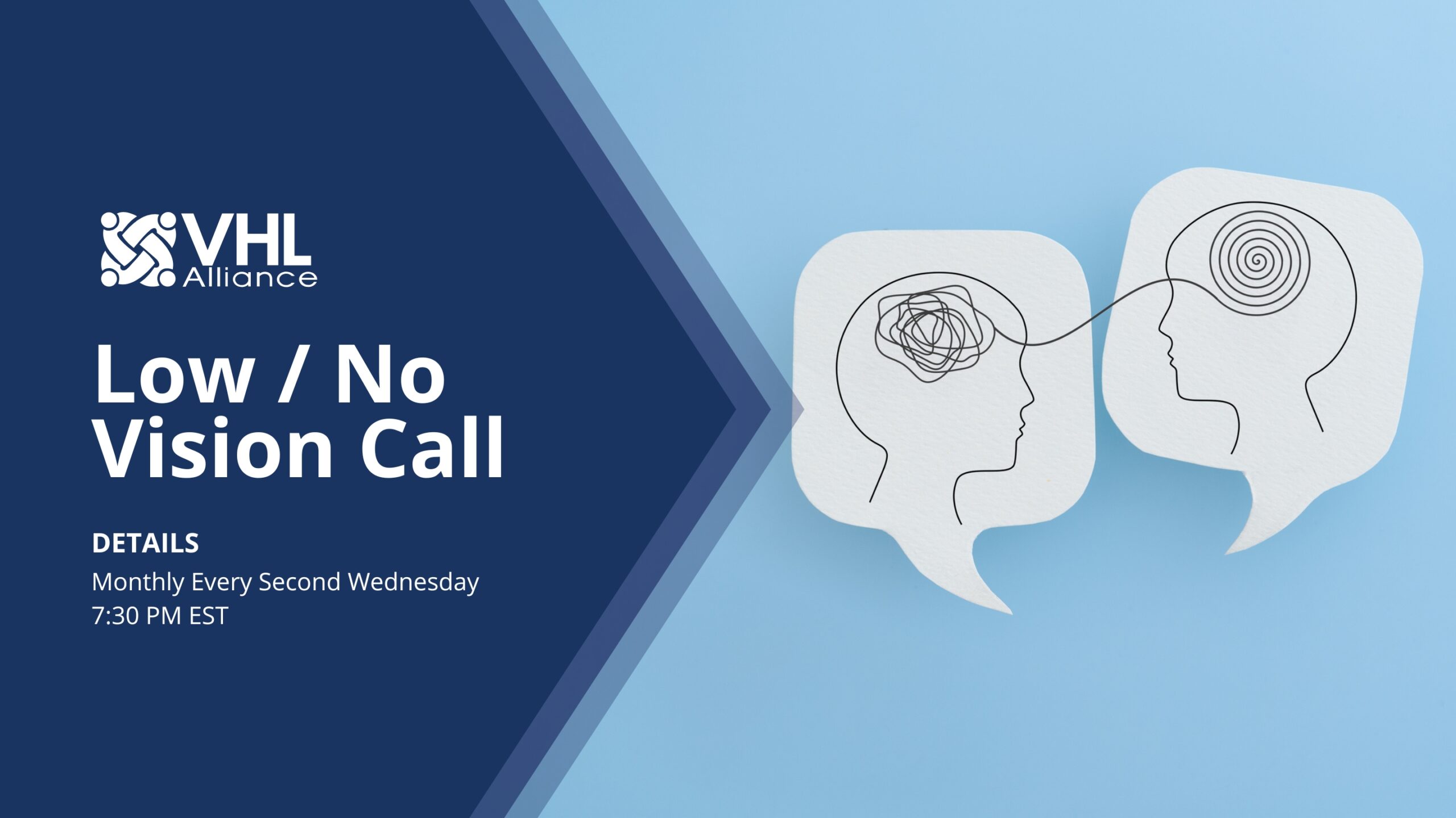 Zoom / OnlineSecond Wednesday of every month. Living with low or no vision creates unique challenges for VHL patients. The Low/No Vision Monthly Discussion Call is specifically designed for support and sharing of important tips and resources. Our call topic: What blindness or VHL related items would it be critical for you to pack in...